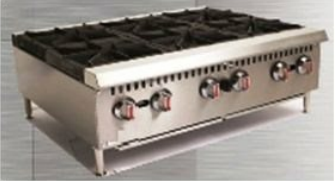 Heavy-duty 6-burner countertop gas hotplate with high heat output, durable cast iron grates, and stainless steel construction Read more